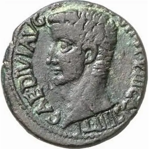 TI CAE DIVI AVG F AVG IMP VIII COS IIII (Translation: Tiberius Caesar, son of the divine Augustus, Augustus, imperator for the eighth time, consul for the fourth time) |