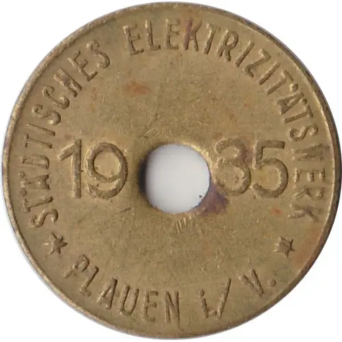 | Obverse lettering | STÄDTISCHES ELEKTRIZITÄTSWERK 19 35 PLAUEN i/V. |