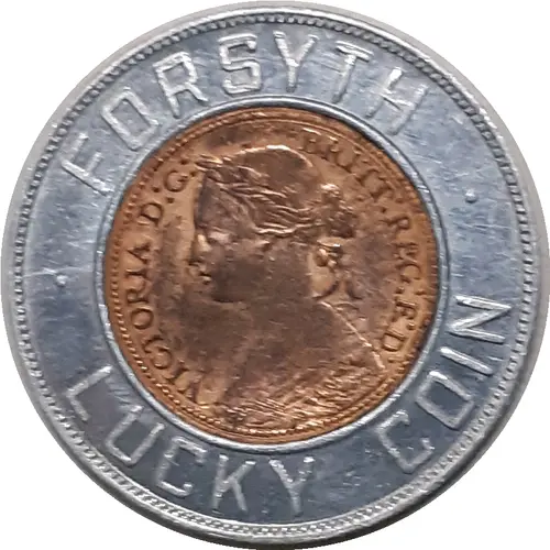 | Obverse lettering | FORSYTH LUCKY COIN VICTORIA D:G: BRITT.REG:F:D: |