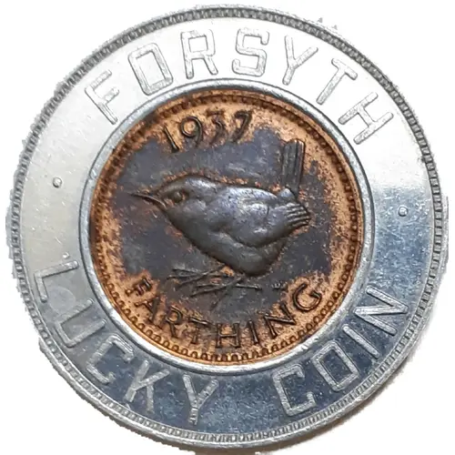 | Obverse lettering | FORSYTH LUCKY COIN 1937 FARTHING |