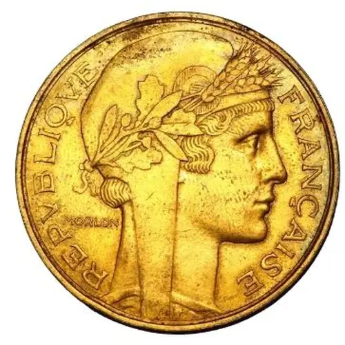 | Obverse description | Bust of the Republic on the right, wearing a Phrygian cap decorated with a cockade under a composite crown of olive tree, oak and wheat; signed MORLON behind. |