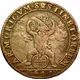 Dressed in a garland of vine leaves, Bacchus straddles a barrel, front-on, supporting on his shoulders an ermine globe encircled by a band. Under a horizontal bar, the date surrounded by two dots. |