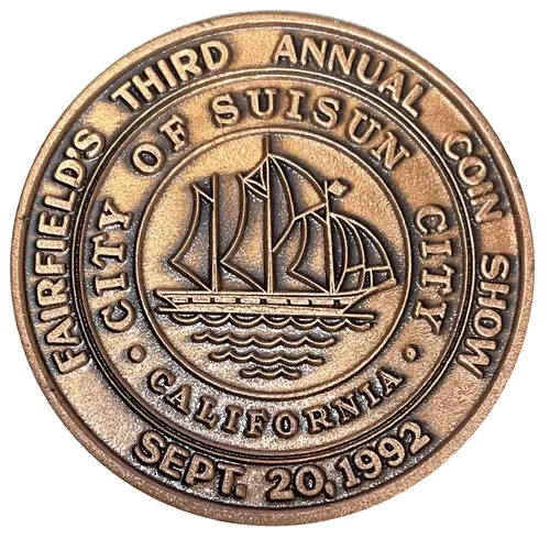 | Obverse lettering | FAIRFIELD`S THIRD ANNUAL COIN SHOW CITY OF SUISUN CITY CALIFORNIA SEPT. 20, 1992 |
