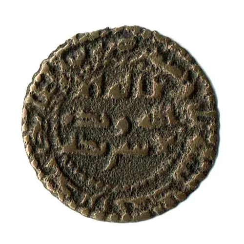 Technical/Grading: At 2.09 grams and 22.3 millimeters, this copper fals exhibits typical characteristics for the type. High-points for detail assessment would be the central legends and the diacritics of the Kufic script. Due to the rapid production of copper coinage, strikes can vary; common technical qualities include minor off-centering, areas of weak strike, or partial flatness, particularly towards the flan edges. The flan itself may show slight irregularities or minor surface imperfections inherent to its manufacture and circulation.