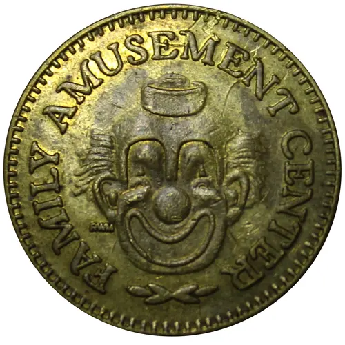 | Obverse description | Family Amusement Center around edge, Clown face in center. |