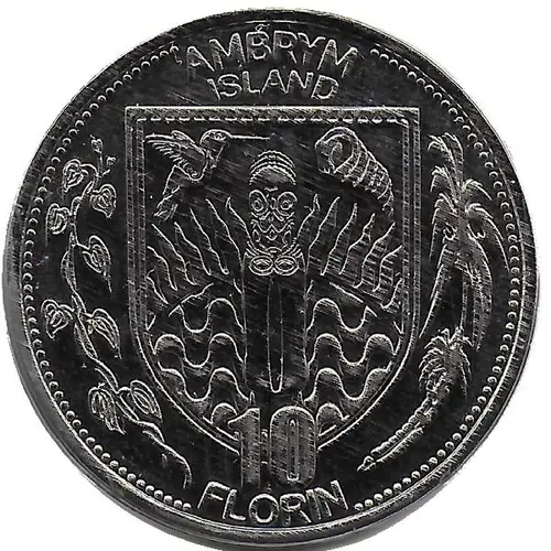 Obverse lettering AMBRYM ISLAND 10 FLORIN