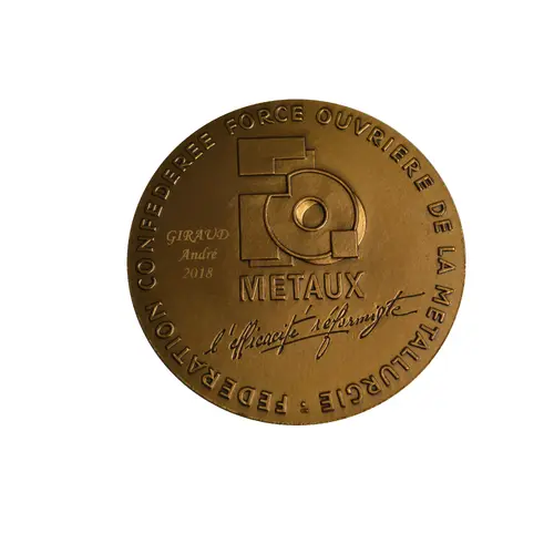 | Obverse lettering | FEDERATION CONFEDEREE FORCE OUVRIERE DE LA METALLURGIE FO METAUX l`efficacité réformiste GIRAUD André 2018 |
