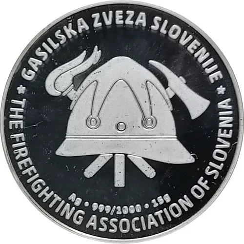 Надписи аверса GASILSKA ZVEZA SLOVENIJE Ag 999/1000 15 g THE FIREFIGHTING ASSOCIATION OF SLOVENIA