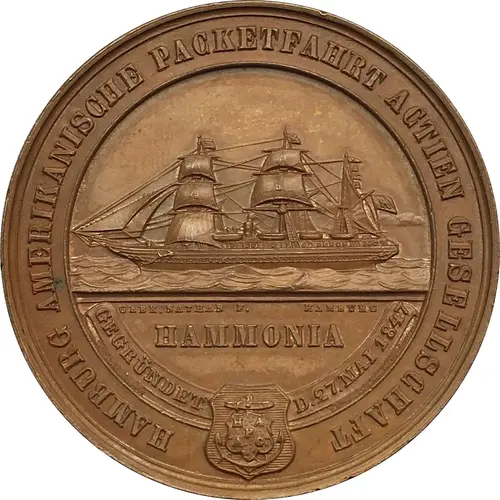 | Obverse lettering | HAMBURG AMERIKANISCHE PACKETFAHRT ACTIEN GESELLSCHAFT GEBR. NATHAN F. HAMBURG HAMMONIA GEGRÜNDET / D.27.MAI 1847 |