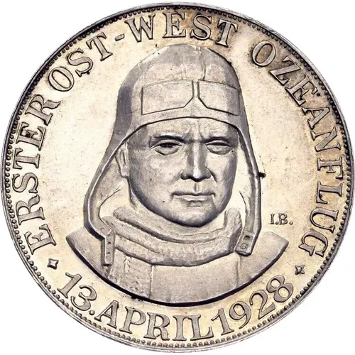 | Obverse lettering | ERSTER OST-WEST OZEANFLUG 13. APRIL 1928 I.B. |