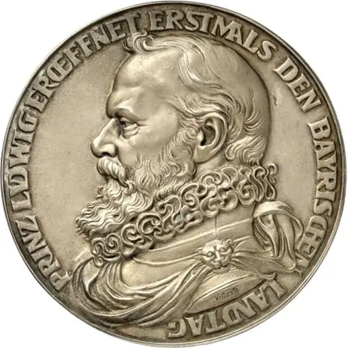 | Obverse lettering | PRINZ LVDWIG EROEFFNET ERSTMALS DEN BAYRISCHEN LANDTAG K. GOETZ |