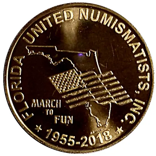 | Obverse lettering | FLORIDA UNITED NUMISMATISTS, INC. MARCH TO FUN * 1955-2018 * |