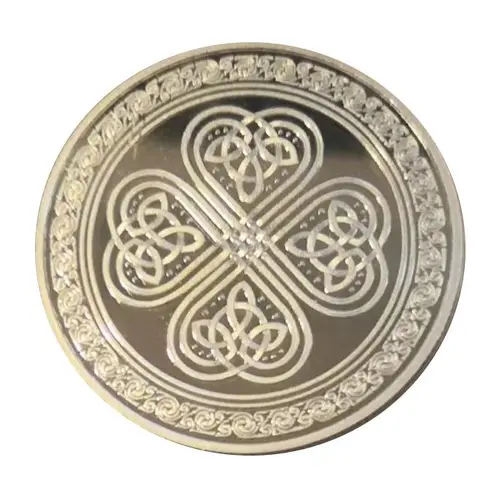| Beschrijving keerzijde | Top; a horseshoe containing a four-leaf clover, with two three-leaf clovers each side. Lettering in middle. Below a repeat of top design |