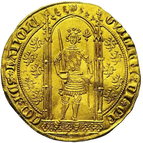 | Obverse description | The count standing and facing forward under a gothic arch, wearing a crown of roses and a cuirasse with the arms of Bavaria, and holding an upright sword over his right shoulder, and a long fleur-de-lis tipped scepter in his left hand. Five lions in the fieled on each side of the arch |