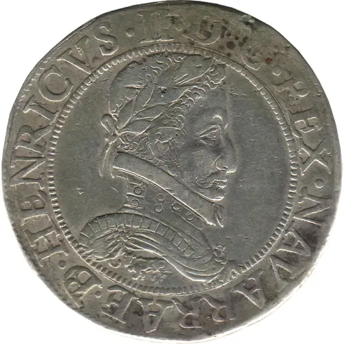 HENRICVS.II.D.G.REX.NAVARRAE.BD (Translation: Henry II, by the grace of god, king of Navarra and lord of Bearn.) |