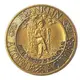 A lit torch standing at mid point on a ribbon containing two dates, before a laurel wreath. |