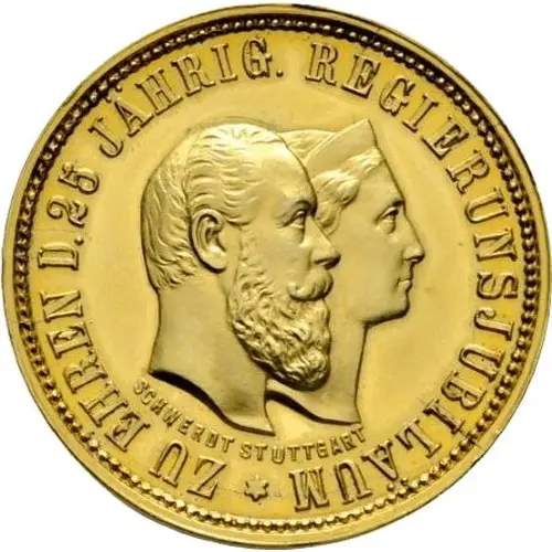 | Opis líce | ZU EHREN D. 25 JÄHRIG. REGIERUNSJUBILÄUM SCHWERDT STUTTGART |