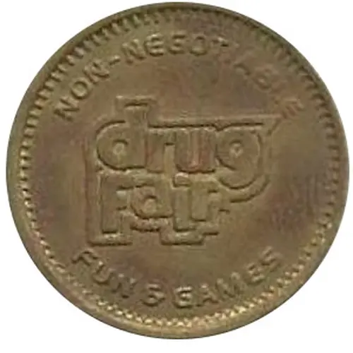 | 表面の説明 | Hash tags around entire token, NON NEGOTIABLE on top, FUN & GAMES on bottom, Logo in center drug, Fair |