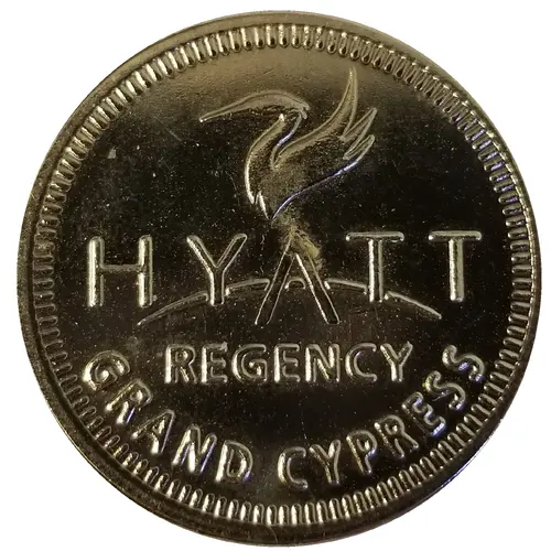 | Popis líce | The Hyatt Regency logo, which includes a bird, with denticles around the rim. |