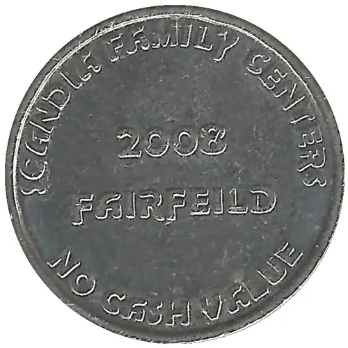 | Obverse description | SCANDIA FAMILY CENTERS at top, NO CASH VALUE at bottom, 2008 FAIRFIELD in center. |