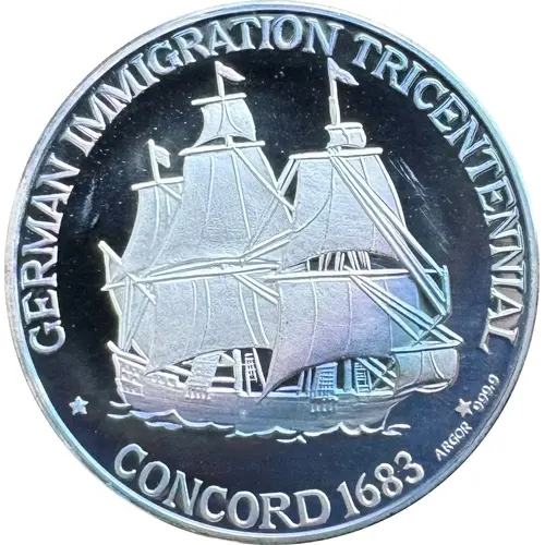 | Obverse lettering | GERMAN IMMIGRATION TRICENTENNIAL ★ CONCORD 1683 ★ ARGOR 999,9 |