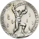 Naked man wrestling with bull, below 5 lines of writing with quote from Ernst Moritz Arndt. |