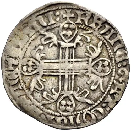 Obverse description Thick, floriate cross with teardrop shaped arms of Gattilusio at tip of each arm, in beaded inner circle.