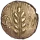 | Opis awersu | Ear of corn of three or four pairs of grains with clearly-defined central stalk and bristles rising from the grains in the top half. Inscription to left and right. |