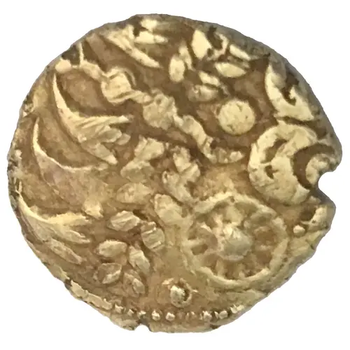 | توضیحات پشت سکه | Horse right with beaded mane, ringpole protruding from chest. Solar anemone and ringed-pellet above. Seven-spoked wheel below. |