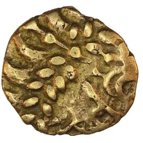 | Arka yüz açıklaması | Disjointed (segmented) horse right, triple tail with pellet terminals, pellet mane or no mane. Collar around horse`s neck, strap around horse`s belly. Floral sun (sunburst rosette) above with pellet-in-ring motif at centre. Wheel with 6-8 spokes and axle below. Ringpole from breast. |