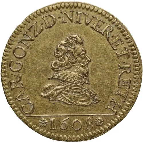 | Obverse lettering | CAR GONZ D NIVER ET RETH 1608 |