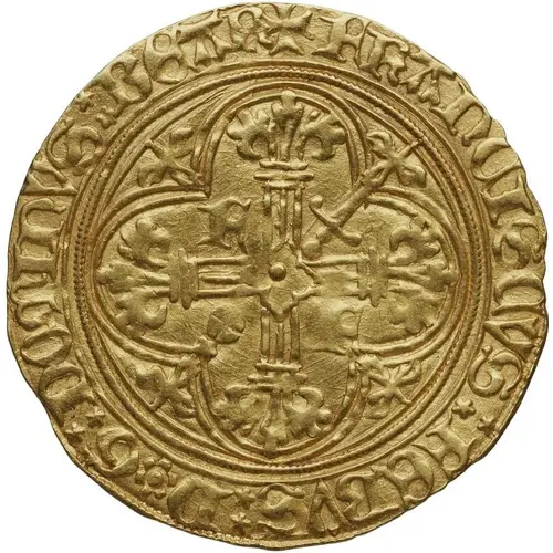 | توضیحات پشت سکه | Two cows on shield left within quadrilobe. |