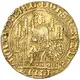 John crowned and seated in a gothic stall, holding a sword in his right hand, and resting his left hand on a shield of Burgundy |