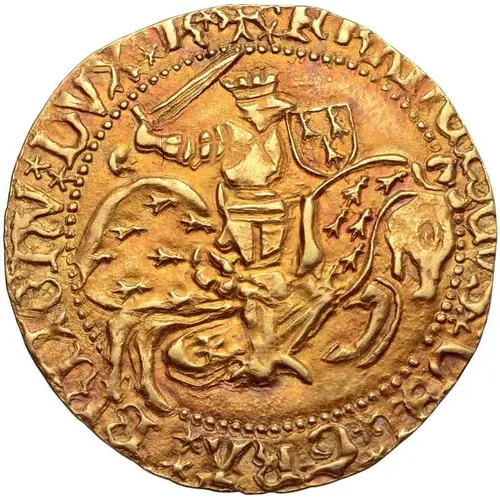 | Obverse description | The Duke brandishing the sword and the shield with three ermines, riding to right on a horse bearing his coat of arms. |