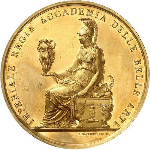 IMPERIALE REGIA ACCADEMIA DELLE BELLE ARTI • L • MANFREDINI F • (Translation: Imperial Director Academy of Fine Arts • L • Manfredini F •) |