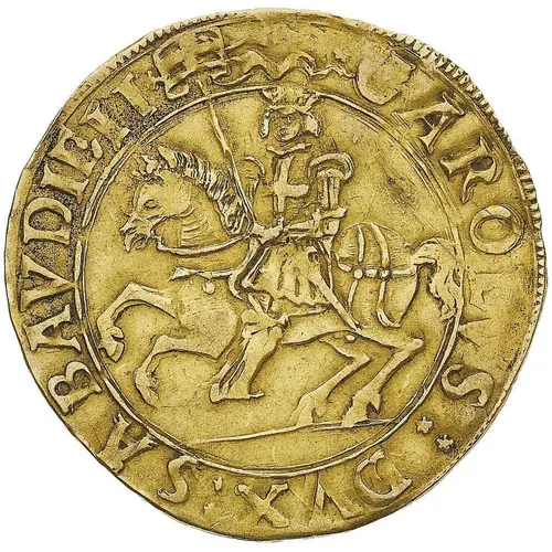 CAROLVS DVX SABAVDIE II (Translation: Charles II, Duke of Savoy.) |