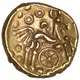 | Reverse description | Triple-tailed horse right, elliptical ear, tail has three strands with pellets. Eight-spoked wheel with axle below. Cross, crescent and two ringed pellets above forming hidden face. Three large pellets below tail. |