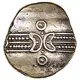 | Obverse description | Back-to-back outline crescents at centre of straight wreath with very fine leaves between three parallel lines and ending in annulets. Ringed pellets either side and parallel grooves either side of those. |