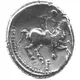 | Popis rubu | Warrior holding reigns with spear and shield on his back, riding trotting horse with single strand tail and mane of pellets on lines, right. Widely-spaced inscription behind rider, above horse`s head and below horse. Pellet border. |