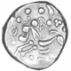 | Reversbeschreibung | Sinuous horse left. Winged motif from base of neck. Pellets around. |