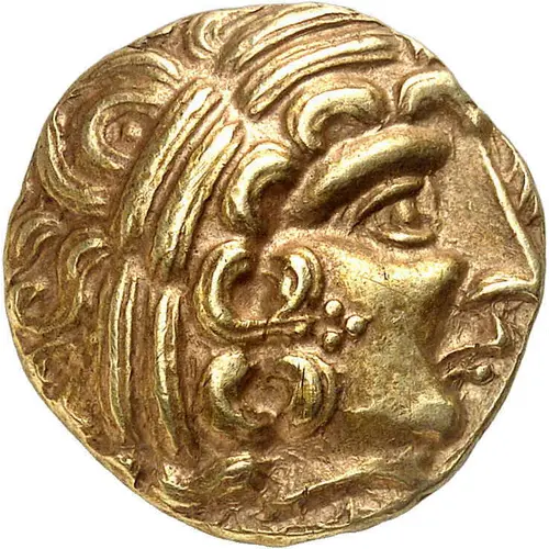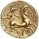| Arka yüz açıklaması | Androcephalic horse facing right led by charioteer holding balled standard. Below, hippocampus. |
