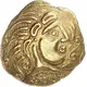 Obverse description Stylized head right; volute in front of the face; “fruit” in front of the chin; wolf-tooth decoration under the neck.