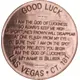 A good luck coin with a creature named billiken on it followed by a short poem of the good luck that billiken brings. |