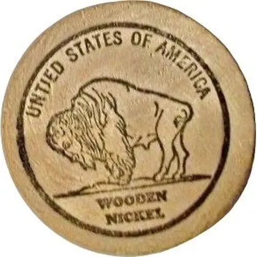 | Obverse lettering | UNITED STATES OF AMERICA WOODEN NICKEL |