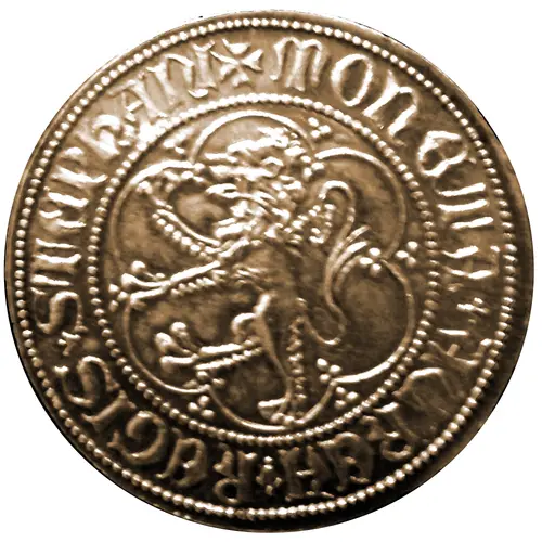 Artistry: While the specific engraver remains anonymous, typical for medieval Balkan mints, the Great Bosnian ducat exhibits a stylistic blend of contemporary Venetian and Byzantine influences, infused with distinct Bosnian heraldry. The obverse likely features a regal depiction of King Tvrtko I, perhaps enthroned, while the reverse would display prominent dynastic symbols like the Bosnian fleur-de-lis or Kotromanić coat of arms. The design conveys a powerful message of royal authority and national identity.