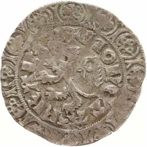 | Obverse description | Rampant lion facing left, surrounded by legend and a border of one lion and eleven leaves each inside an arc. |