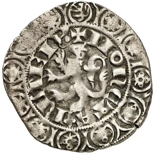 | Obverse description | Rampant lion facing left, surrounded by legend and a border of one lion and eleven leaves each inside an arc. |