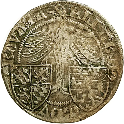 | Ön yüz açıklaması | Large eagle with outstretched wings, head on the left, cutting the legend at 12 o`clock, the talons on the quarterly shield of Bavarian-Palatinate to dexter and on the Luxembourgish shield to the lion crawling to the left on a field of five pieces sinister. The two crowns divide the legend. Legend between two pearled circles. |