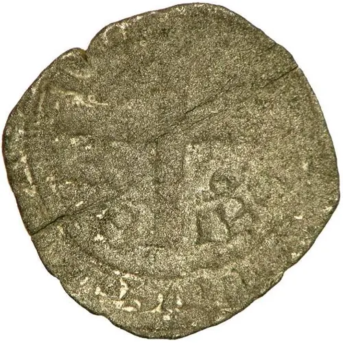 The outer border is composed of nine lily-trimmed ovals; in the field, a castellum tournois, underlined by an annulet and crowned by a wreath that cuts the inner legend at the top. |