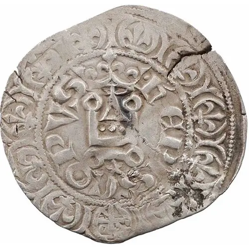 | Obverse description | Crowned chatel tournaments, border of lilies around and orb with bishops arms below. |